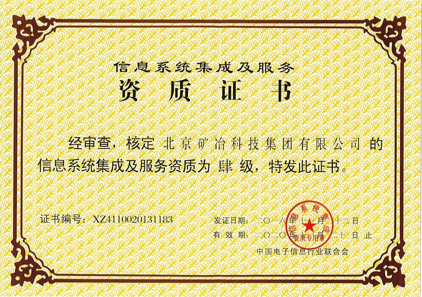 系统集成证书