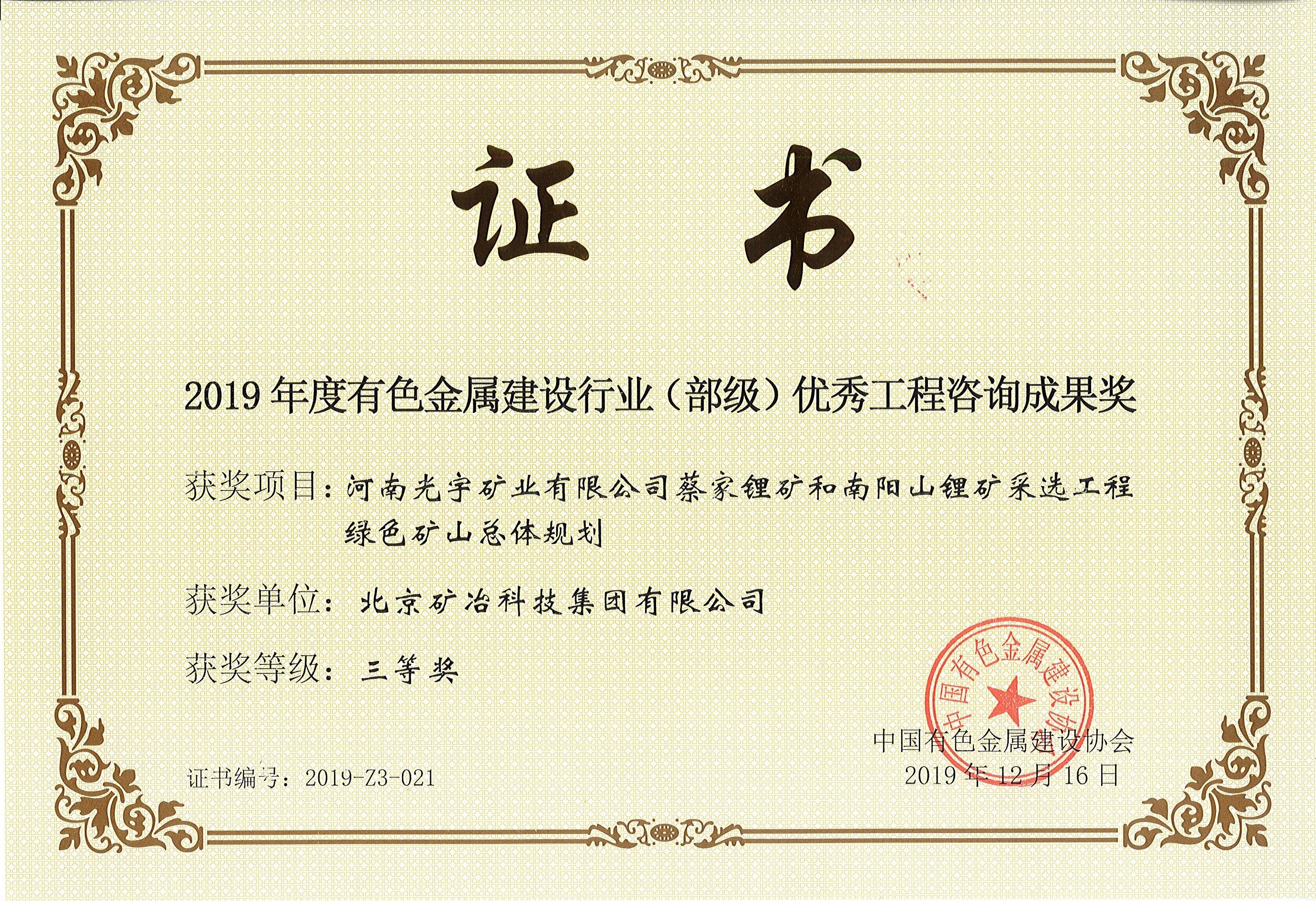 河南光宇矿业有限公司蔡家锂矿和南阳山锂矿采选工程绿色矿山总体规划 三等