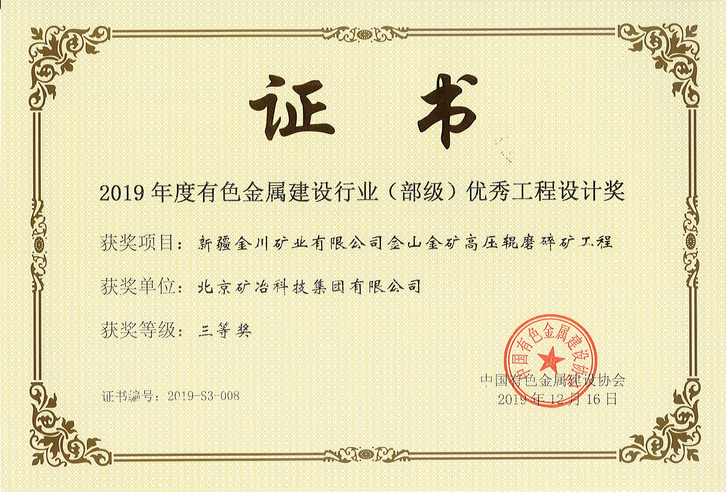 新疆金川矿业有限公司金山金矿高压辊磨碎矿工程 三等