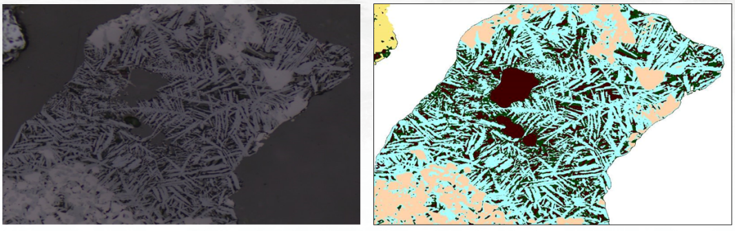 AI-SPS系统(AI based Iron-ore sinter phase and structure analysis system)是专为烧结矿显微图像开发的智能分析系统,融合人工智能与图像识别技术,能够自动识别和量化烧结矿中的主要矿相(如磁铁矿、赤铁矿、铁酸钙等)及其微观结构形态(如针状、纤维状、板柱状铁酸钙;原生、次生赤铁矿),同时评估孔隙结构与分布。传统的矿相分析依赖人工经验,效率低、重复性差,而AI-SPS实现了“全像素识别+自动统计+结果可视化”,仅需简单操作,即可快速获得全面矿相报告。系统适用于烧结过程质量控制、烧结配料方案评估、异常结构排查等场景,帮助企业实现矿相识别的数字化、标准化、自动化,有效提升烧结矿的稳定性、抗压强度和高炉透气性。